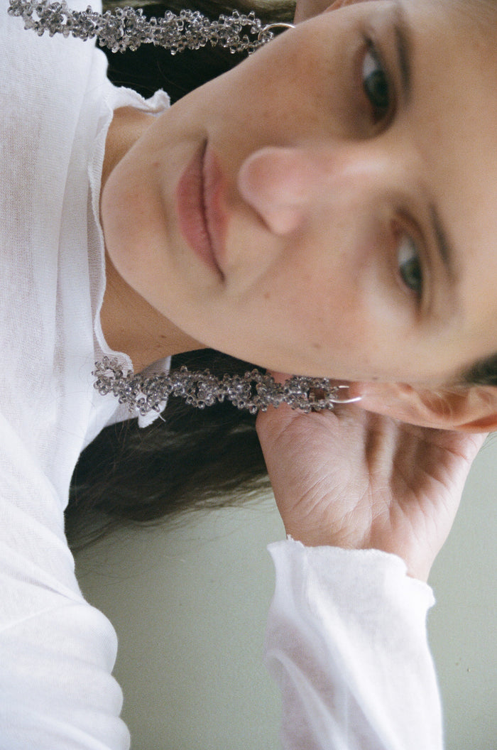 La créole est en argent , elle a un diamètre de 10 mm, elle est assez proche du lobe de l'oreille.